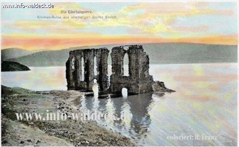 Der 1. April 1912 war der Tag des endgültigen Abschieds der Dorfbewohner von Berich an der Eder. Für kurze Zeit zogen in die noch bewohnbaren Häuser - viele waren bereits abgerissen oder Ruinen – Arbeiter, die an der Sperrmauer beschäftigt waren. Im Herbst wurden dann die Gebäude und Gebäudeteile gesprengt und angezündet.