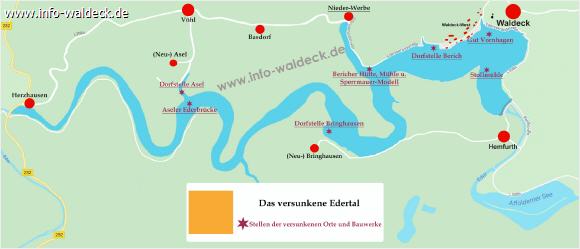 Bei dem Modell sind Informationen zu der Dorfstelle Berich und den anderen versunkenen Stätten im Edersee gegeben. Über einen QR-Code kann sich der interessierte Besucher die "Edersee-Atlantis APP" auf sein Handy laden und zusätzliche Informationen zu Berich erhalten. An der Dorfstelle im Edersee-Becken kann man mit der APP einige Häuser virtuell an Ort und Stelle erscheinen lassen und so eine virtuelle Reise durch das Dorf unternehmen.