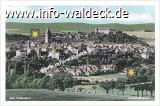 In dem Buch "Die Waldecker Talsperre, 2. Aufl." von W. Soldan und C. Hessler aus dem Jahr 1911, ist ein Foto abgedruckt, welches den Blick vom Schloss auf das alte Edertal wiedergibt. Hier das von mir bearbeitet und nachcolorierte Bild. [Bildlink