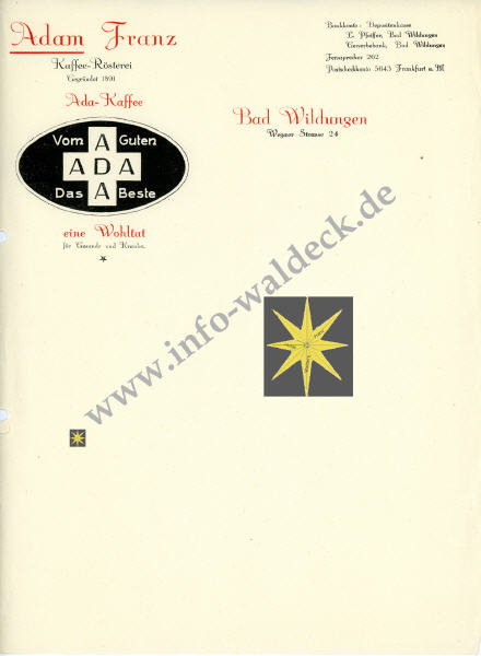 die Rösterei Kaffee-Franz mit 1 Kafferöster und der Kaffeemarke ADA-Kaffee mit 4 Geschmackssorten. Der Kaffeeröster, ein Kugelröster, stand in der 2. Etage des Hauses Brunnenstraße 10. Diese Kaffeerösterei bestand bis 1969.